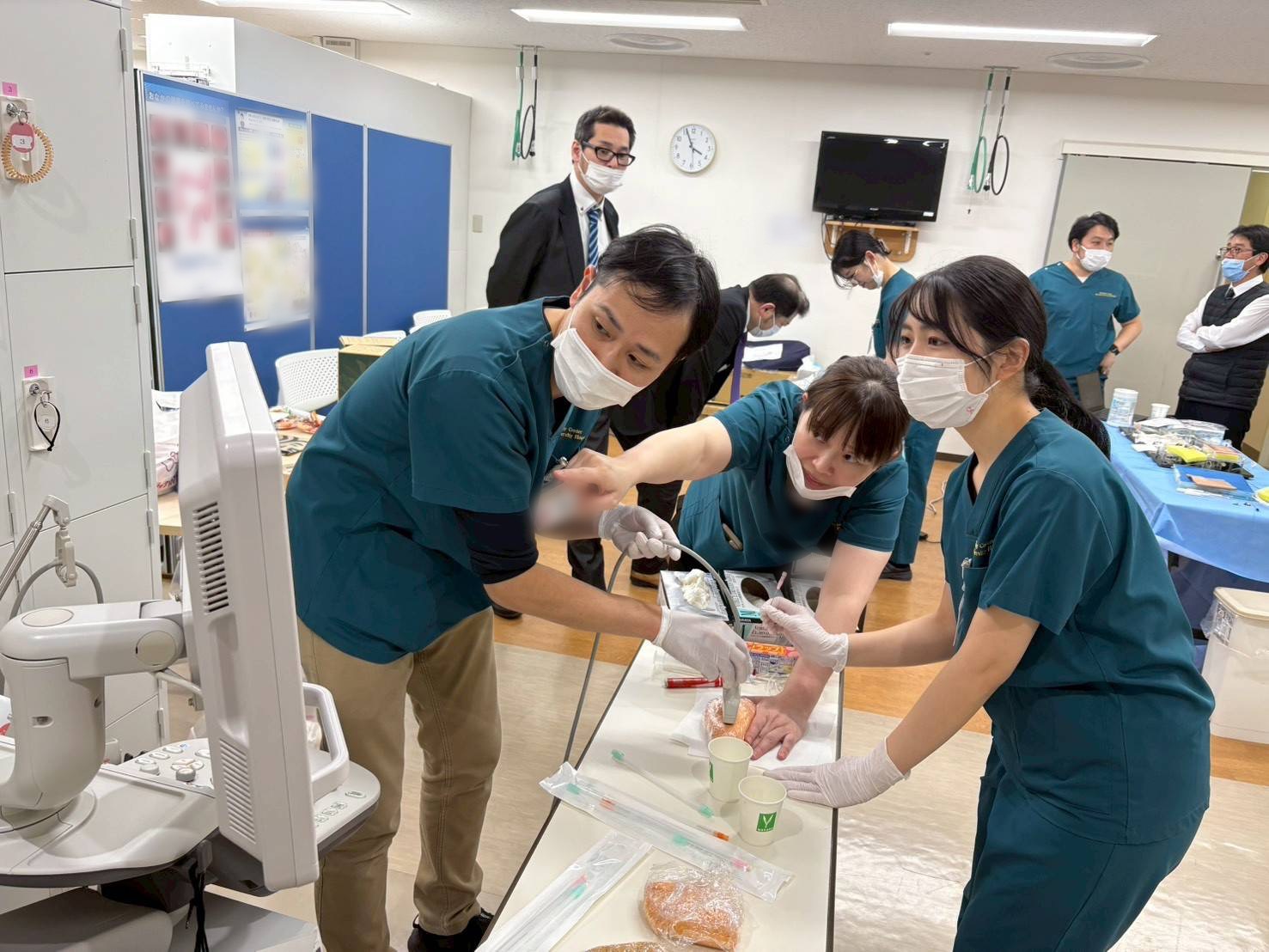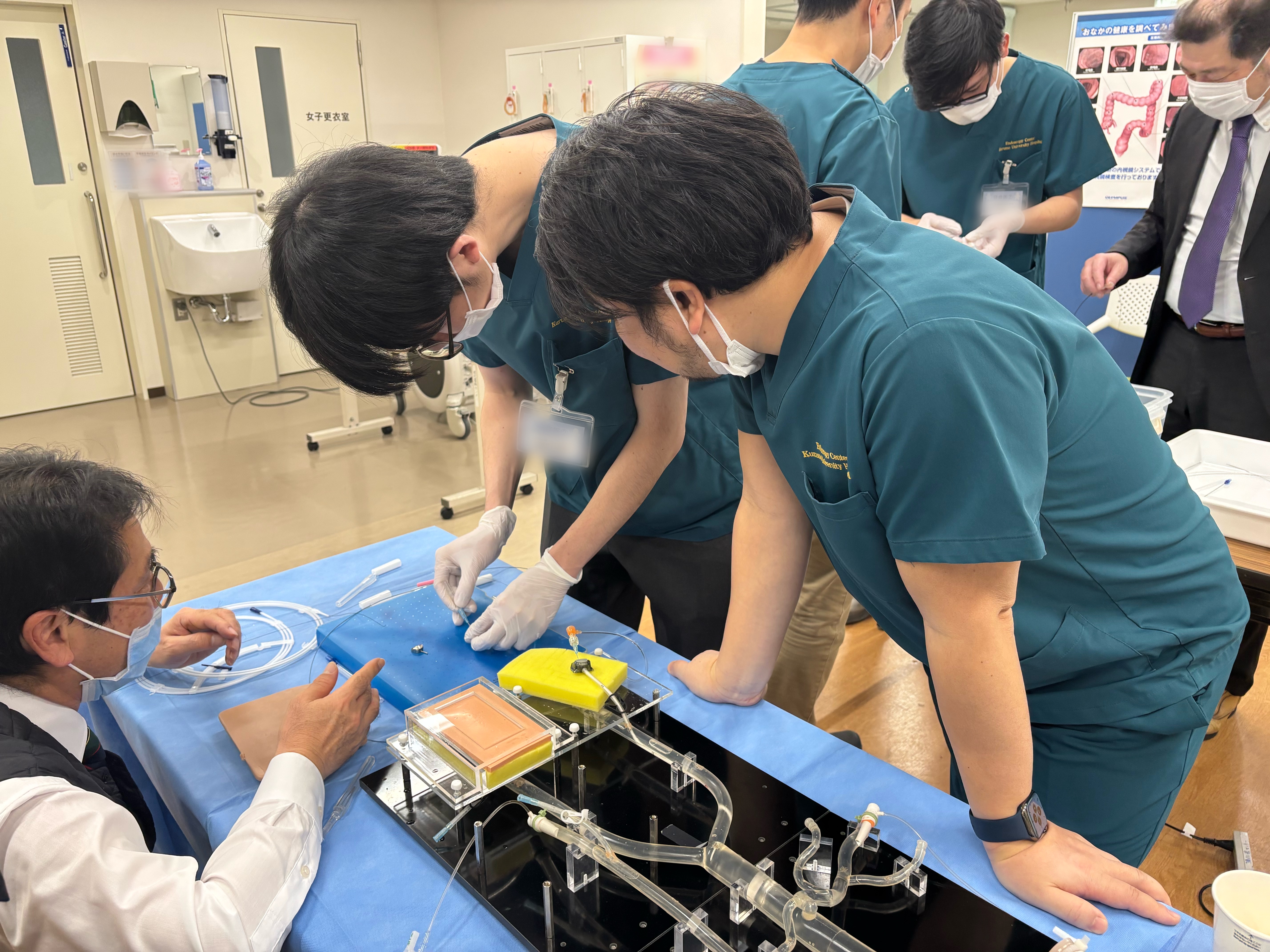 普段は検査や治療を見学することが多い研修医の先生方にも、本物の内視鏡やカテーテル、各種検査機器を実際に操作してもらいました。日頃から検査や治療に携わっている専門医から、直接指導を受けられる非常に貴重な機会となったと思います。参加された先生方からも高い評価をいただき、終始和やかな雰囲気の中で有意義なセミナーとなりました。
